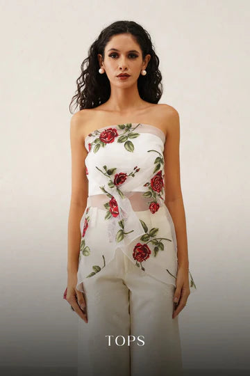 Quickshop Introducing our “Rose Petal Peplum” bustier top, crafted from sheer organza adorned...